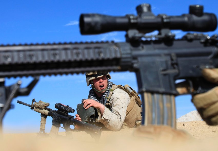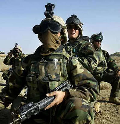 1993年在索马里的海豹六队黑队的狙击手,他们的RECCE步枪护木前下方都安装了一个AIM-1