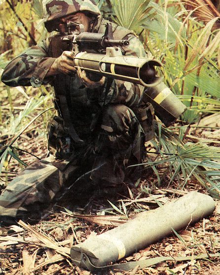 这种RAW(Rifleman's Assault Weapon,步枪手突击武器)由美国布伦斯威克防务公司(Brunswick)在1970年代末开始研制的。1978年初,美陆军导弹司令部和布亚斯韦克公司合作研制了一种挂在步枪枪管下方的步兵攻坚武器。攻坚弹的战术用途主要是用于城市作战时破坏、击毁敌人建在市区的碉堡,地堡和其他工事,清除各种路障,也可以用于攻击敌人的轻型装甲车和无装甲防护的车辆,在弹内加上预制破片后,还可用于杀伤敌人的集群目标。