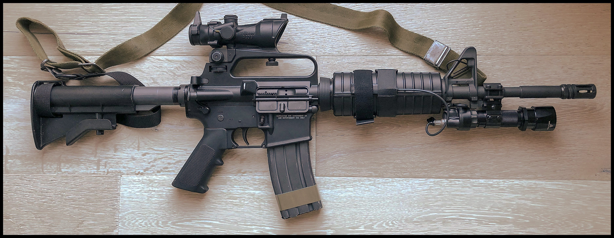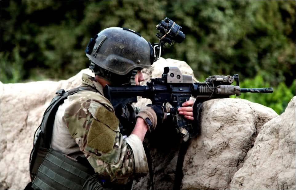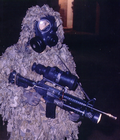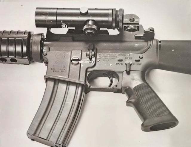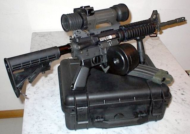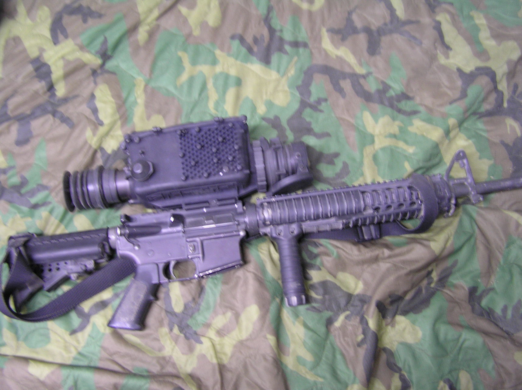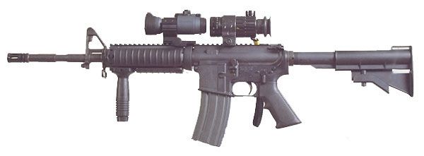 1995年一位美国陆军特种部队(绿色贝雷帽)的M4A1,上面就安装了一个ITT的Night Ranger 4x夜视瞄准镜