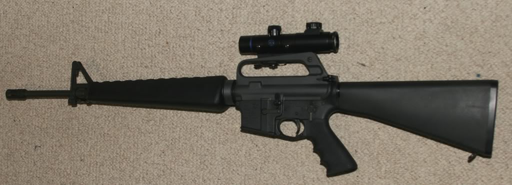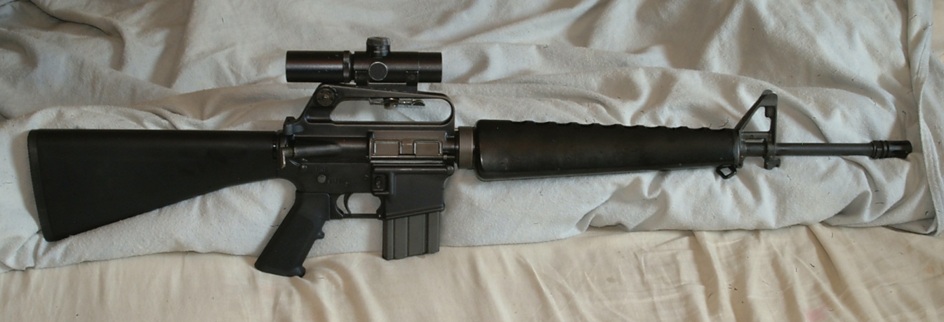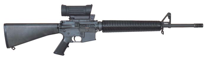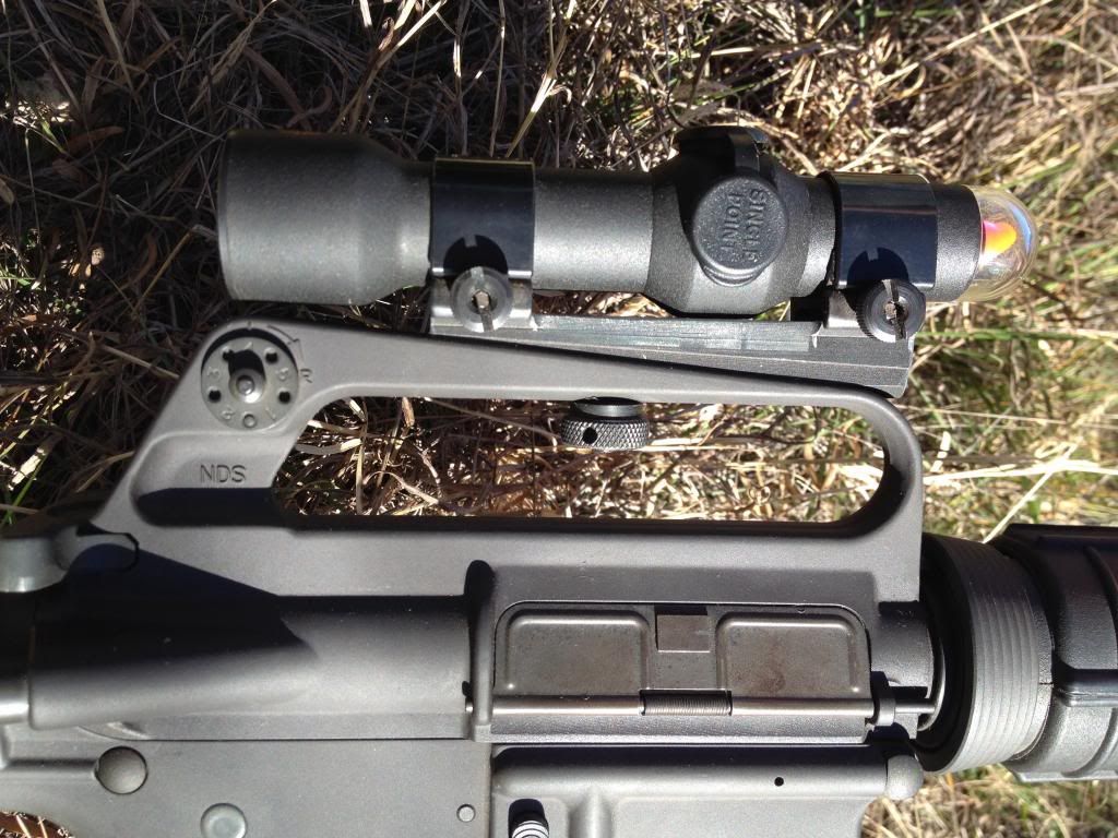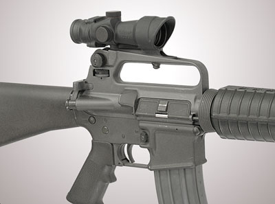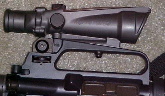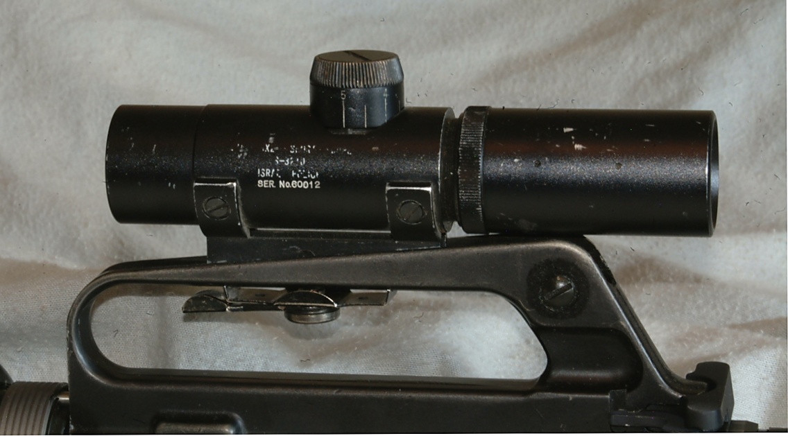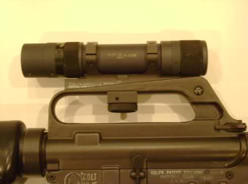 柯尔特公司早年为M16生产过3倍瞄准镜,后来生产4倍的瞄准镜(Colt 4x21 Range Finding Illuminated Reticle Scope)可安装在提把上的瞄准镜安装孔内,这种瞄准镜在越战时期被使用过,甚至有些一直使用到21世纪初。有一些厂家生产与柯尔特的提把瞄准镜相似的产品,例如Barska 4x20或Combat Military Optics公司的MARKSMAN 4x21,不过如果仔细观察,会发现的Barska和Combat Military Optics的瞄准镜的调整旋钮位置与柯尔特瞄准镜的不同。