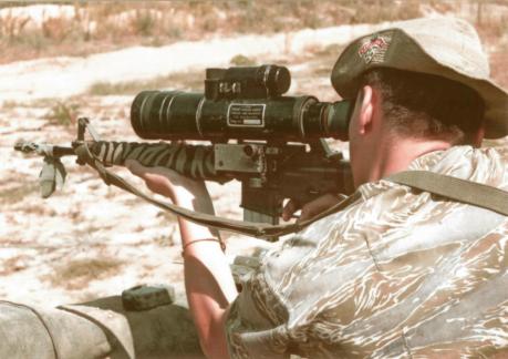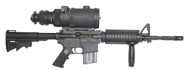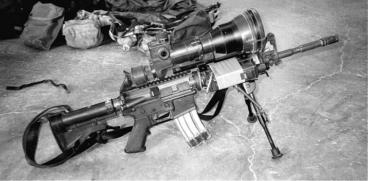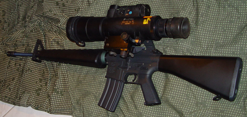安装在M16A1上的AN/PVS-4是美军主要的夜间狙击武器