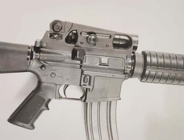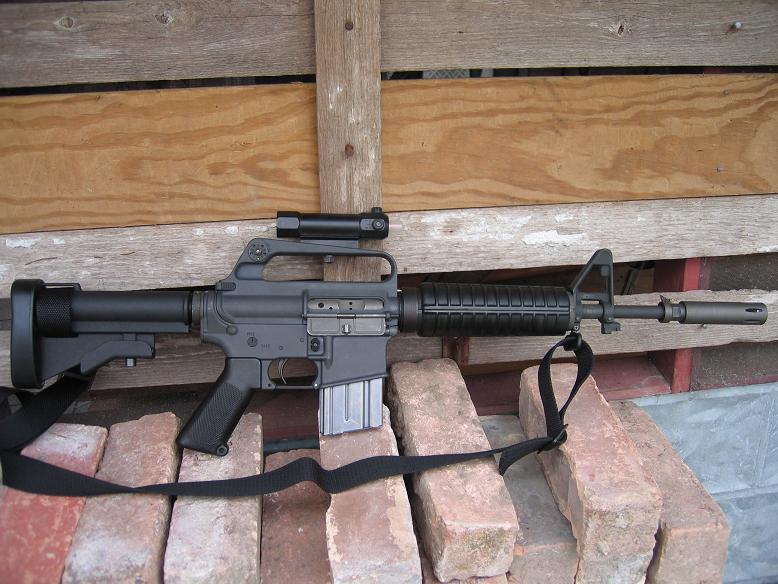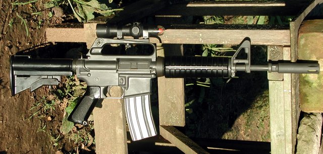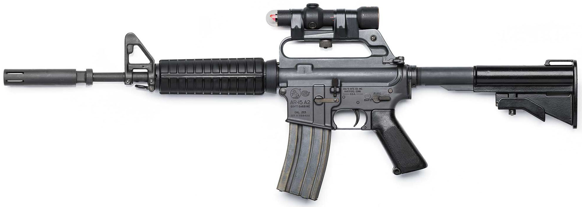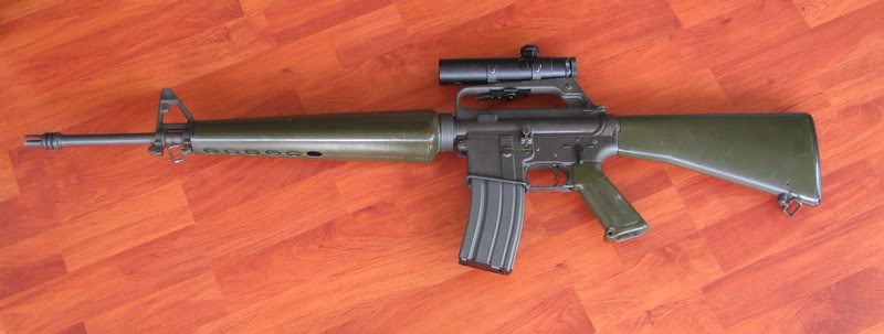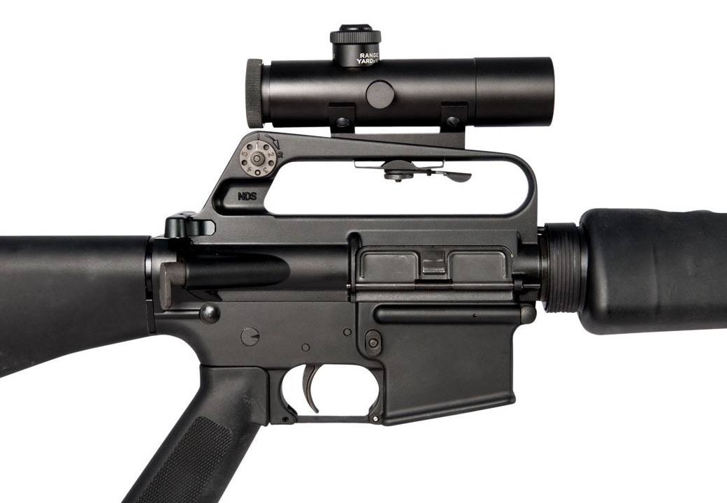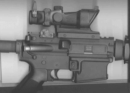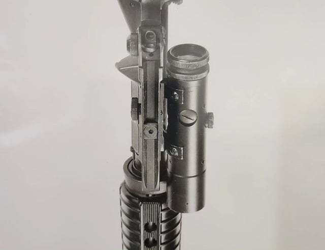 图中的XM177E2上安装的瞄准镜是柯尔特提把瞄准镜,但图左的XM177E2上安装的则是3~9倍ART