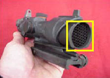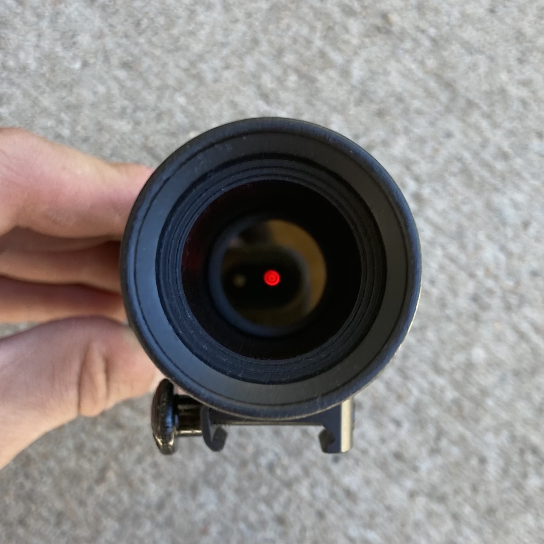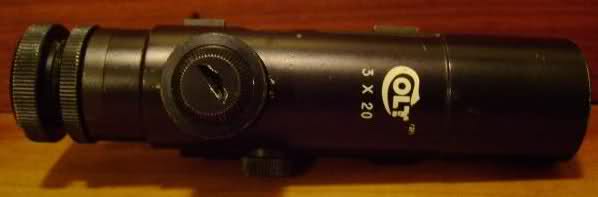 早期型的柯尔特3X瞄准镜,镜筒上的字只是简单地刻下去
