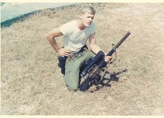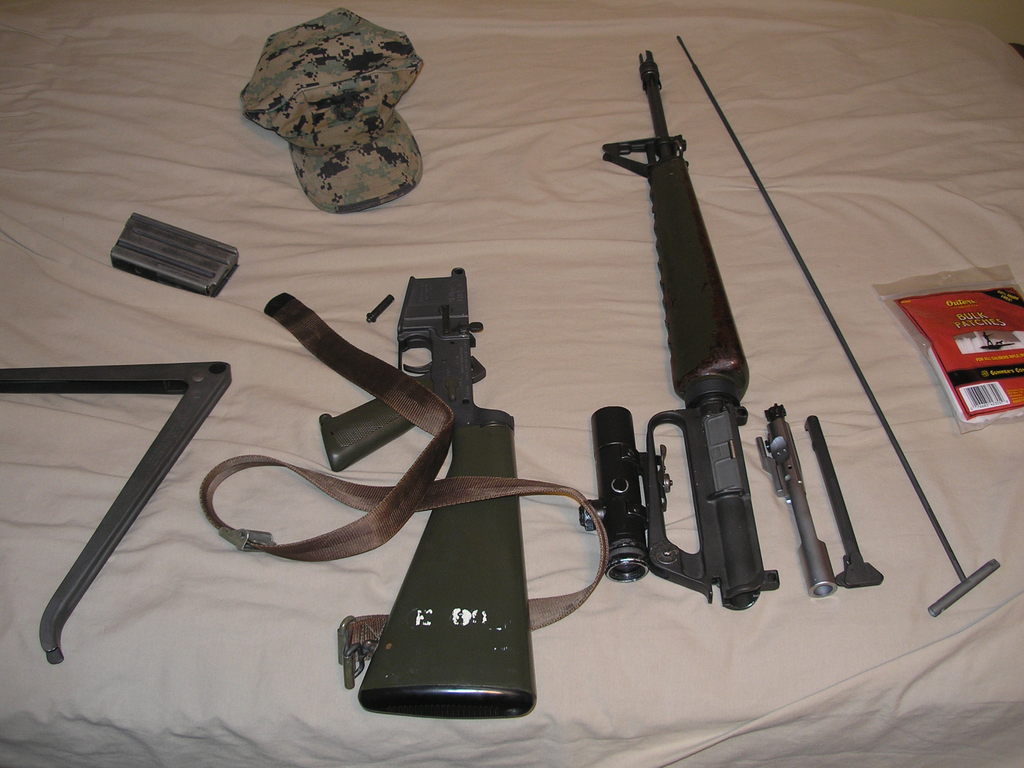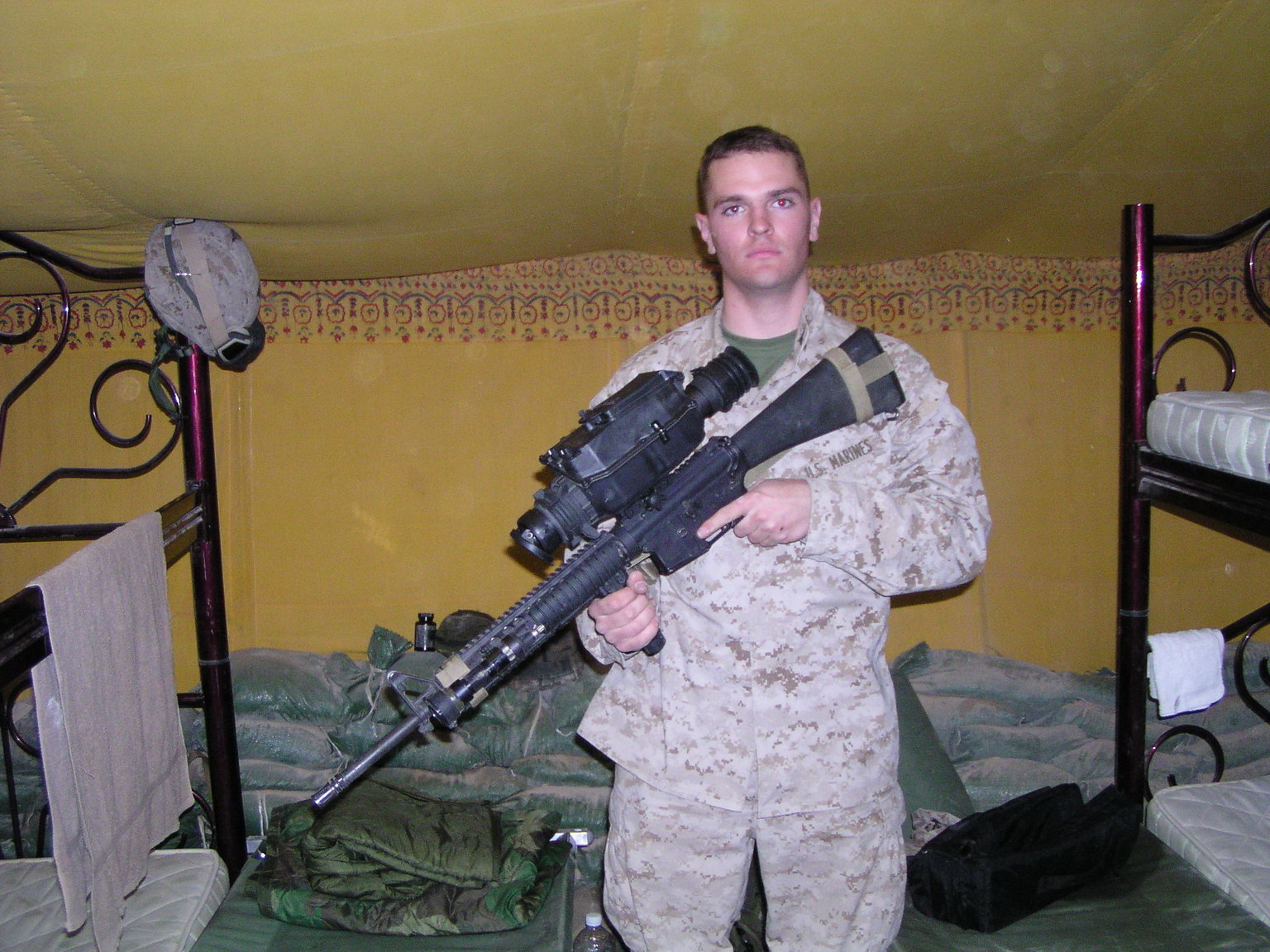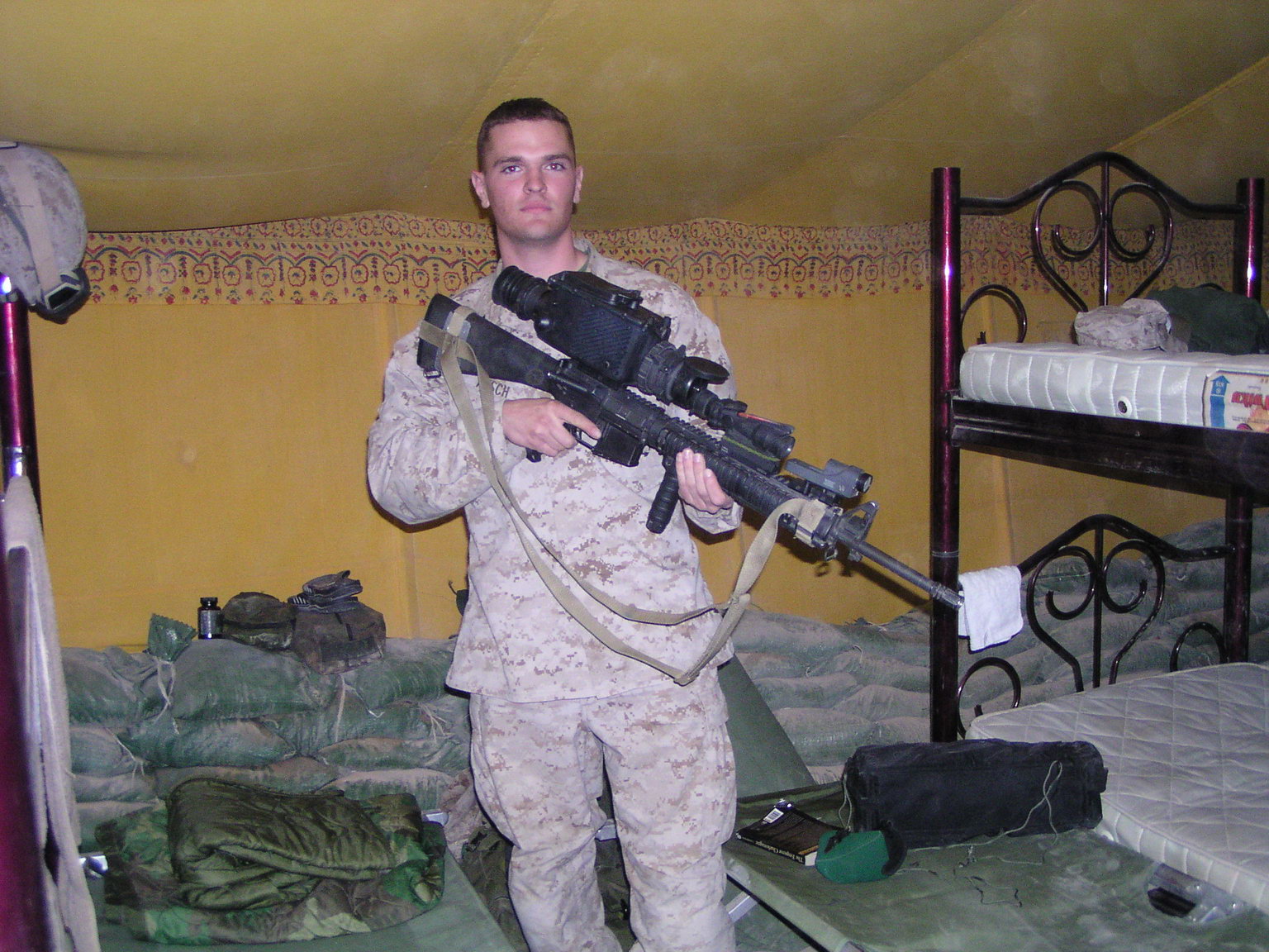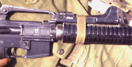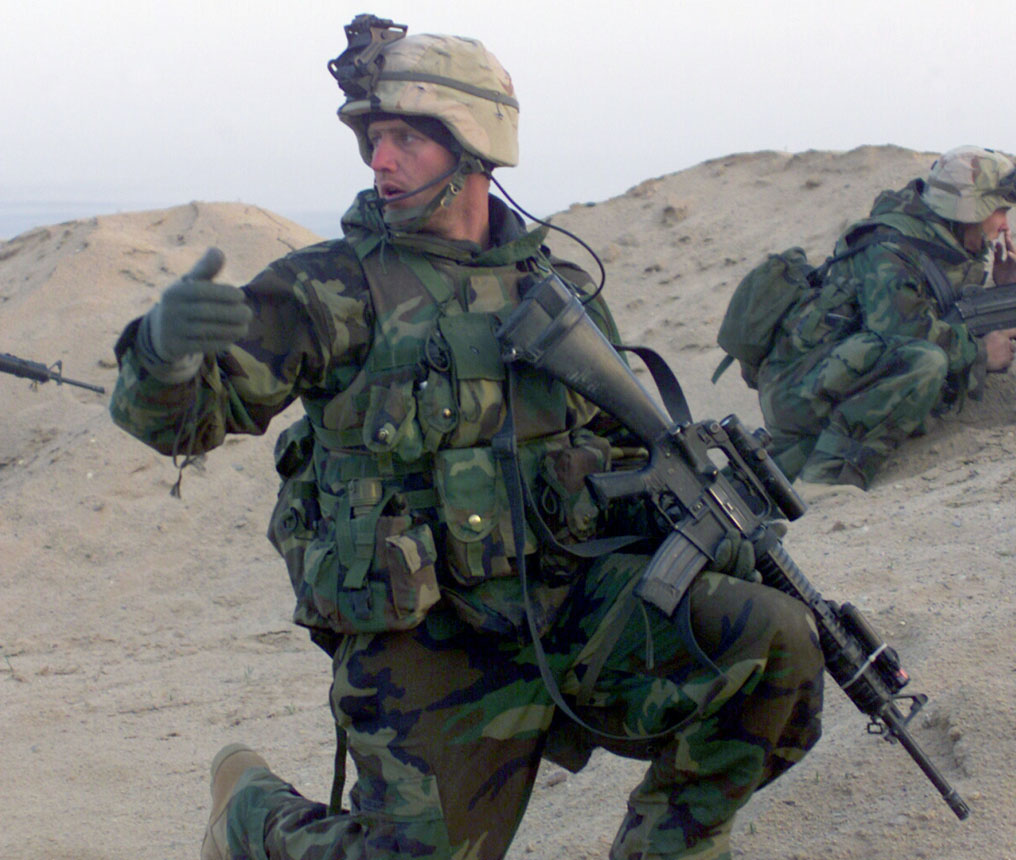 这名海军陆战队员在他的M16A2的提把上安装了ACOG Reflex,这是2003年伊拉克战争