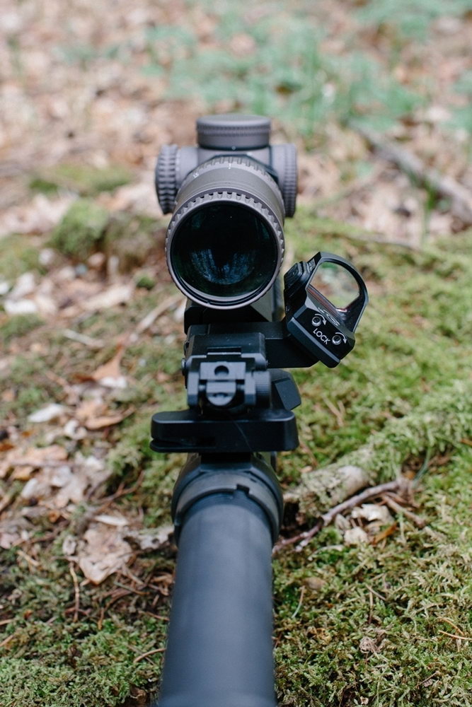Trijicon公司的Docter及RMR小型红点镜不仅被装到ACOG或ELCAN SpecterDR顶部使用,近年来也有一些特种兵把小型红点镜装到M4A1的机匣侧面斜45度位置,而在机匣顶部安装没有红点镜的普通低倍瞄准镜,这样在正常抵肩瞄准时则使用低倍镜,而需要使用红点镜时只需要把步枪侧过45度就仍然能抵肩贴腮瞄准射击。而那些装在低倍率瞄准镜顶部的小型红点镜的缺点则是不能抵肩贴腮地瞄准。