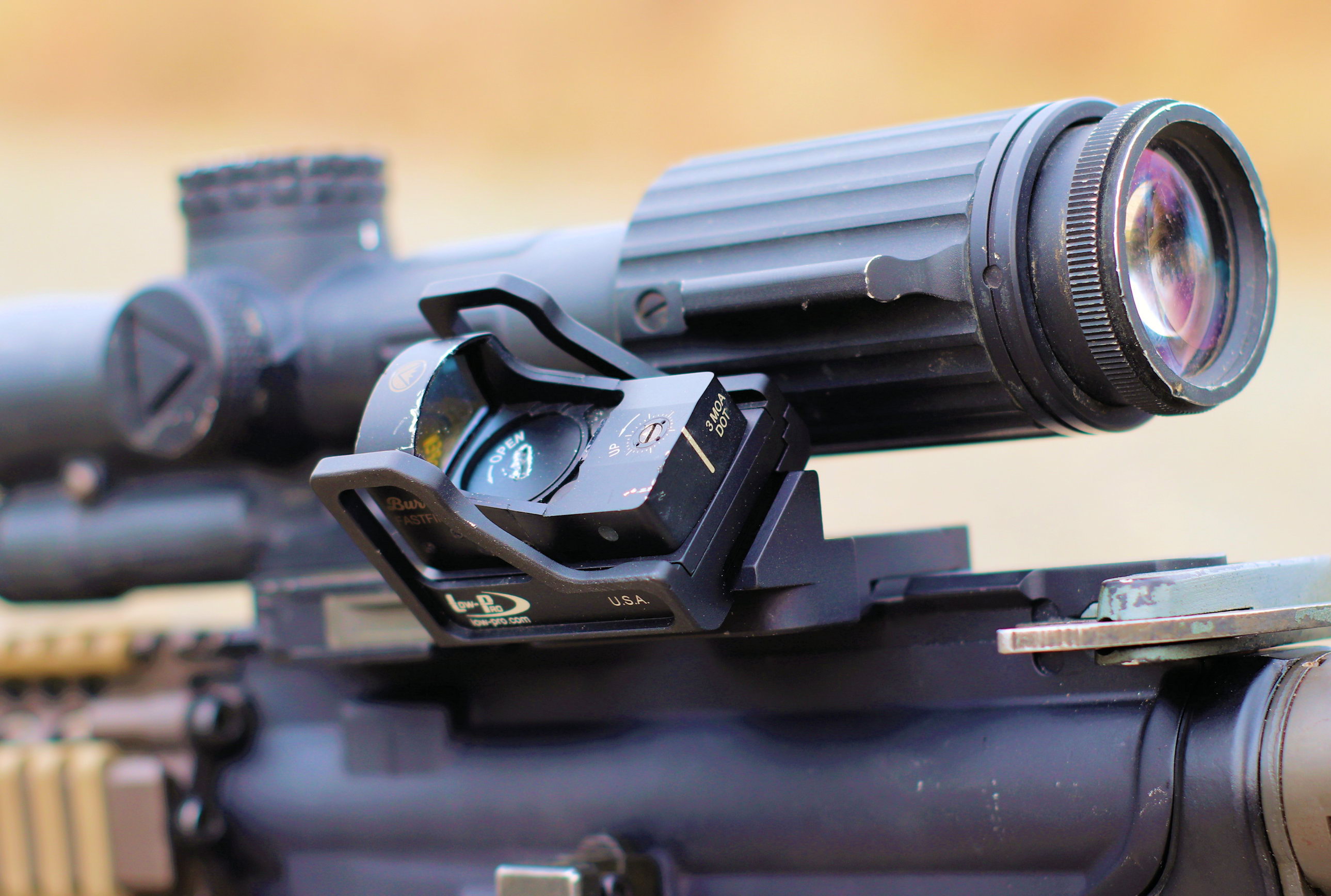 在1990年代有一些特种作战人员DIY一个O.E.G.在4倍ACOG上面,远近皆宜,在2002年的时候SOPMOD M4中有一项与倍率瞄准镜组合的小型红点镜(Miniature Red Dot)方案就是源自于此