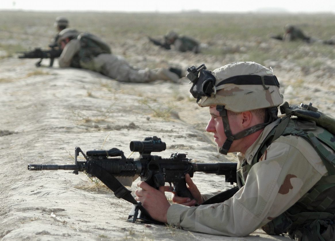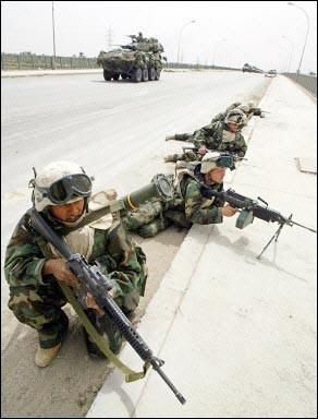 2003年伊拉克战争中,这名美国海军陆战队员的M16A2上还安装着后期型的柯尔特瞄准镜