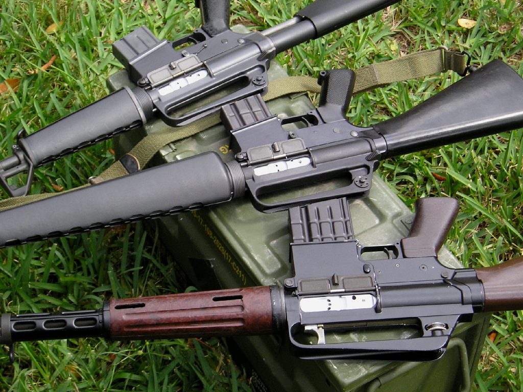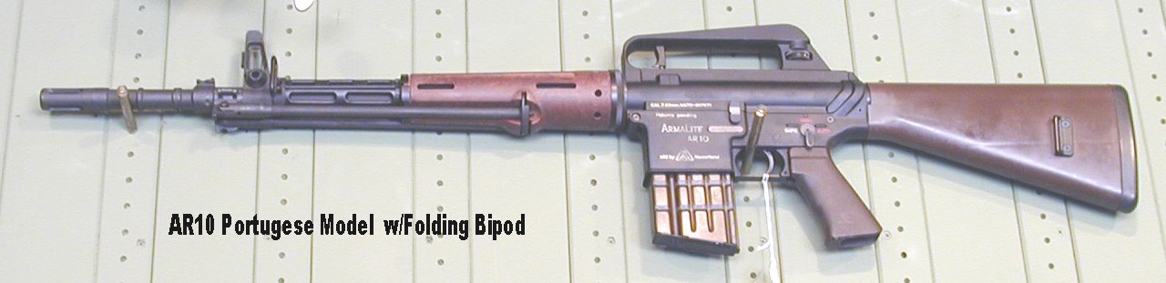 ![]() AR-10的步枪及轻机枪型,上面的是葡萄牙型,最下面一支是苏丹型 |