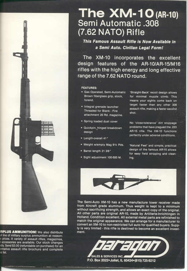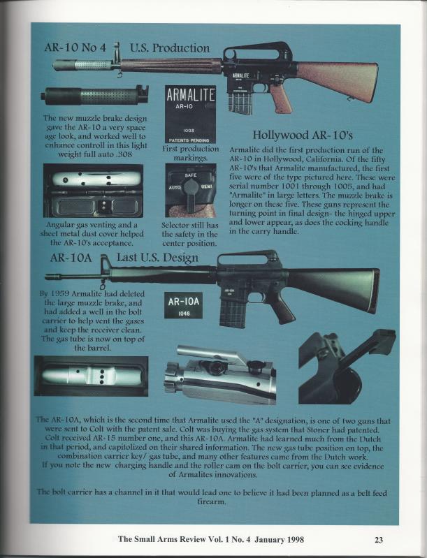 AR-10在选型试验中失败,阿玛莱特转而在高速小口径步枪上努力,AR-10的生产权被卖给一家名为Artillerie Inrichtingen的荷兰公司,但产量非常有限,当时购买AR-10步枪的军队只有苏丹和葡萄牙。除了标准步枪外,AR-10还发展出卡宾枪和重型枪管突击步枪(轻机枪)。AR-10大概在1960年代中期停产,只造了约6千支左右的军用型AR-10,另外还有一些民用的半自动型,据说柯尔特公司也少量生产过,但加起来的总产量不多,感兴趣的人也不多。但当M16被采用为美国的制式步枪时,AR-10立即就成为一种人人都想得到收藏品了。