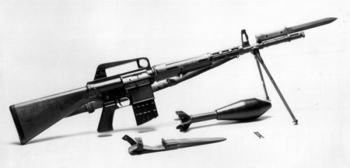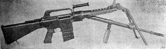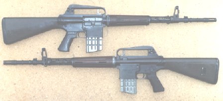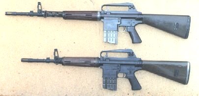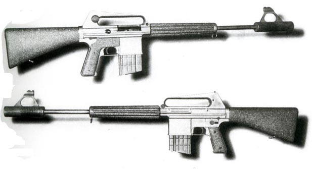 ![]() 上面是早期的AR-10步枪试验型,下面是AR-10的轻机枪试验型 |