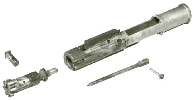 AR-10的枪机前端有8个闭锁凸笋
