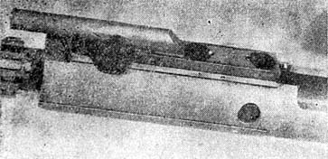 击发后,弹头经过导气孔,一部分火药气体经由导气孔、导气管向后,再通过机框上的进气管进入机框和枪机之间的气室。此时枪机仍处于闭锁位置,因此进入气室的高压火药气体只能对机框起作用,迫使它后退。机框的自由行程约3mm,随后膛压下降至安全值。机框上的开锁螺旋面使枪机导柱绕枪机轴线旋转。于是,枪机上的闭锁、凸笋与枪管节套解脱,实现开锁。开锁后,机框带动枪机后座,同时完成抽壳、抛壳的动作。在后座过程中,复进簧被压缩,击锤亦被压倒并为连发阻铁卡在待发位置上。当机框后座约8mm时,气体开始从机框上的排气孔向外泄出,压力随之逐渐降低。当气体压力完全消失之后,使工作部件后退的作用力也就消失,但机框靠它所具有的能量还要继续向后,直至后座终了。随后,在被压缩的复进簧的作用下,枪机向前复进,推弹入膛。当枪机的闭锁凸笋通过枪管节套中对应的凹槽而到达前方位置时,机框仍继续复进。导柱在机框闭锁螺旋面的作用下,带动枪机向右旋转22.5度,形成闭锁。闭锁完成之后,机框后端便撞击连发阻铁,解脱击锤,打击击针,击发枪弹,完成自动射击动作。