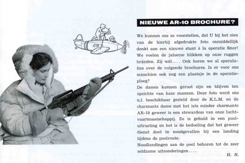 1958年,荷兰皇家航空公司开辟了一条穿越极地的航线时,为机组准备的迫降求生物品里就包括了全自动的AR10,并训练空姐使用这种武器