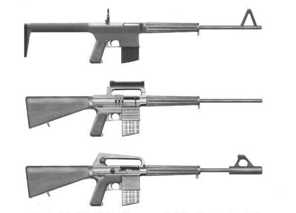 从上到下,为AR10的1、2、3号原型枪