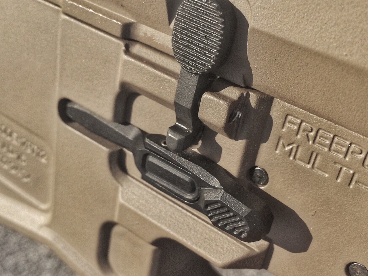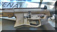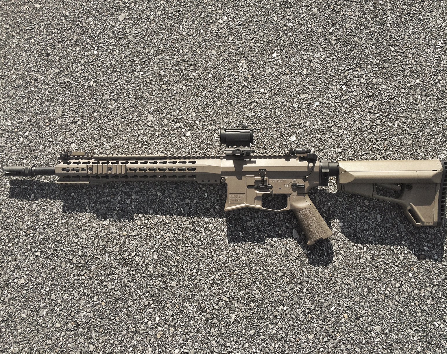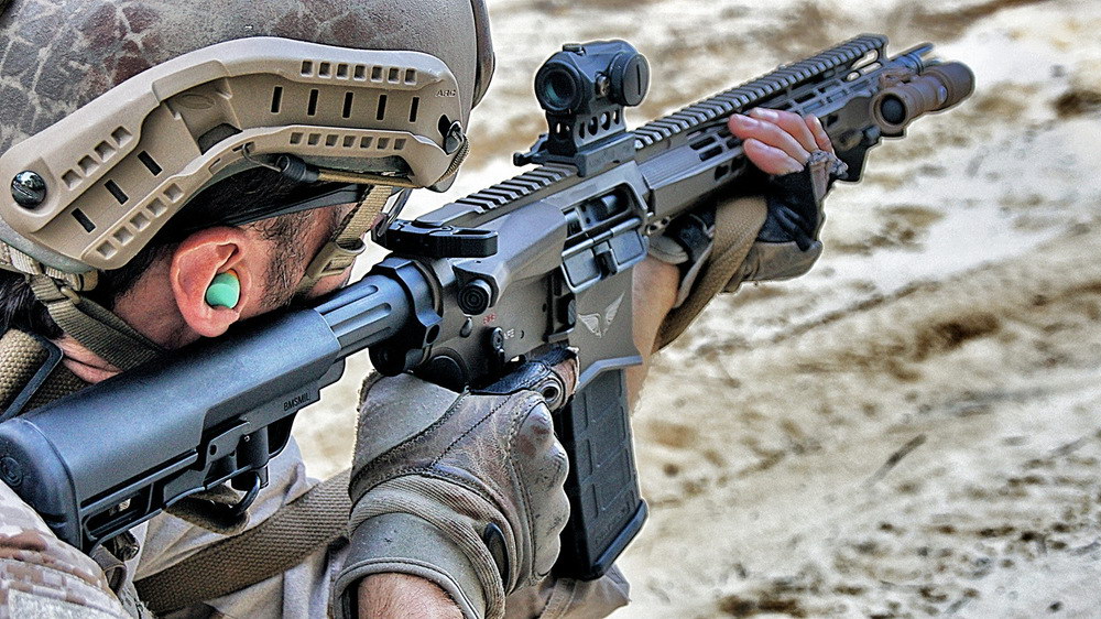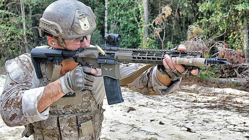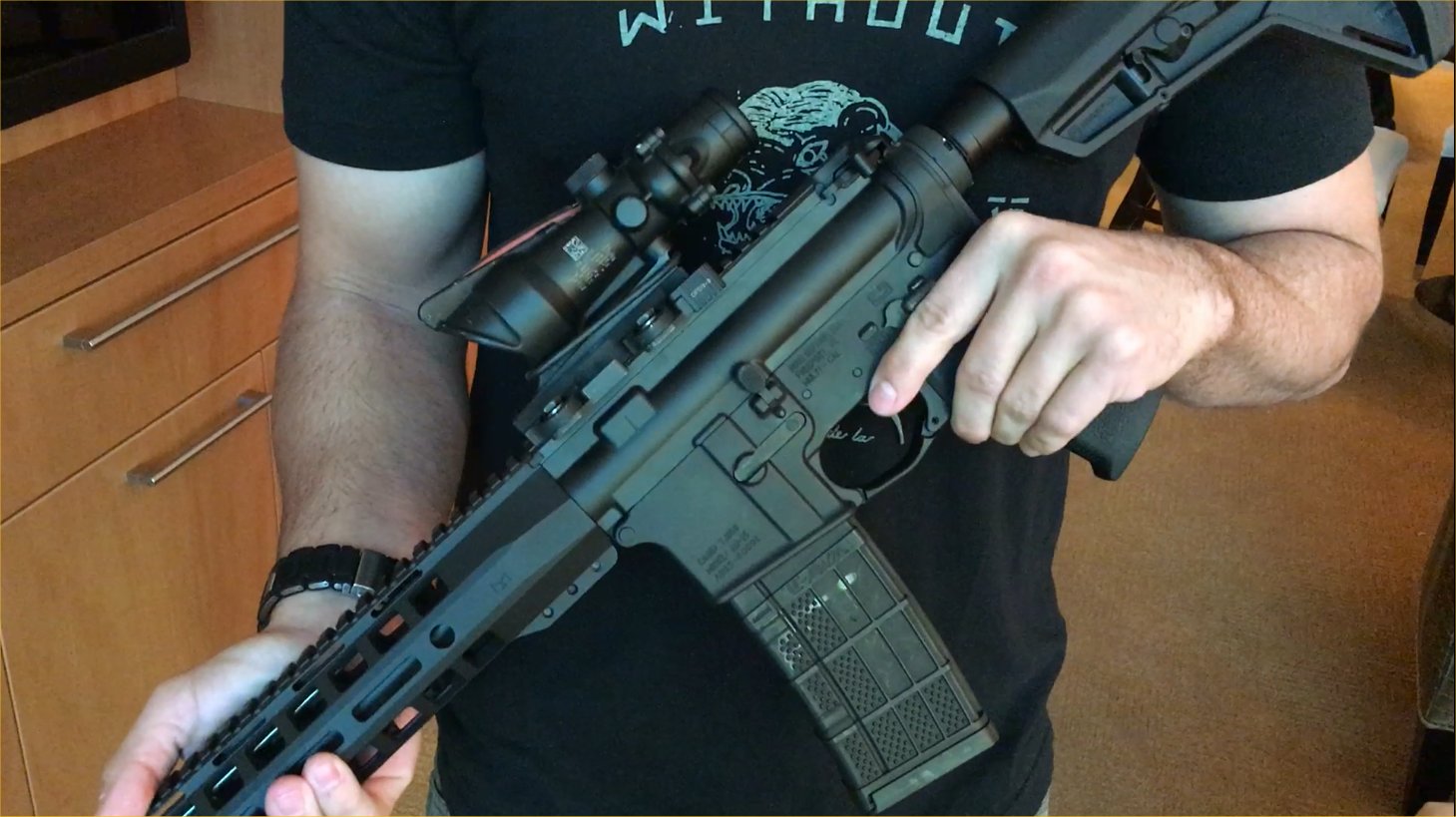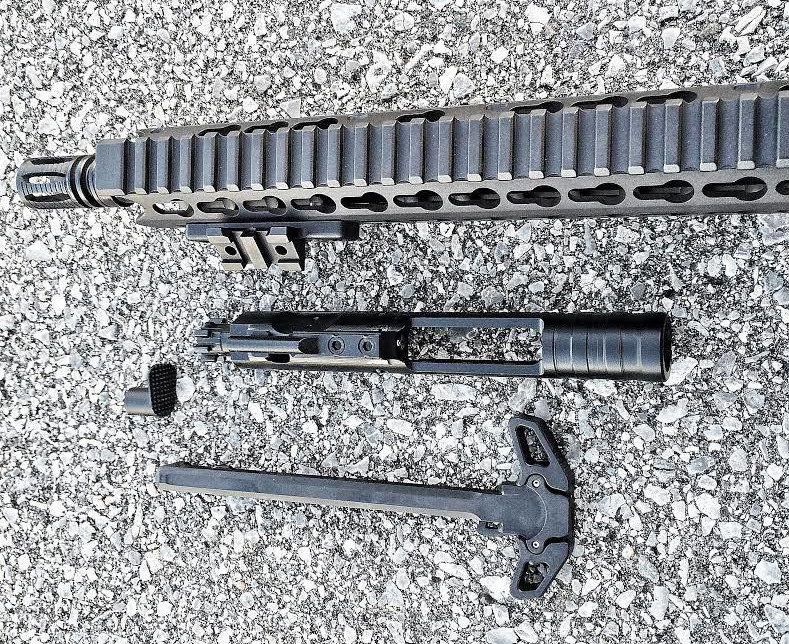 不过除了机匣是自己设计和生产之外,包括复进装置在内的许多部件大多都是直接用市场上常见或流行的成熟产品,例如双面拉机柄(那拉机柄两侧都有解定位钩的锁,但右侧的解锁是与左侧联动的,拉机柄的定位钩依然只是挂在机匣左侧,这是为了方便左右手都能操作),目前所见有VLTOR或Rainier Arms Raptor的产品,枪托采用MFT公司(Mission First Tactical)的Minimalist伸缩式枪托,但也有安装其他枪托的,还有握把也是MFT的EPGI16。不过卖给SOPMOD的只有上机匣(包含枪管、导气装置、枪机),下机匣的复进装置也包括在内,但不包括下机匣、握把和枪托。