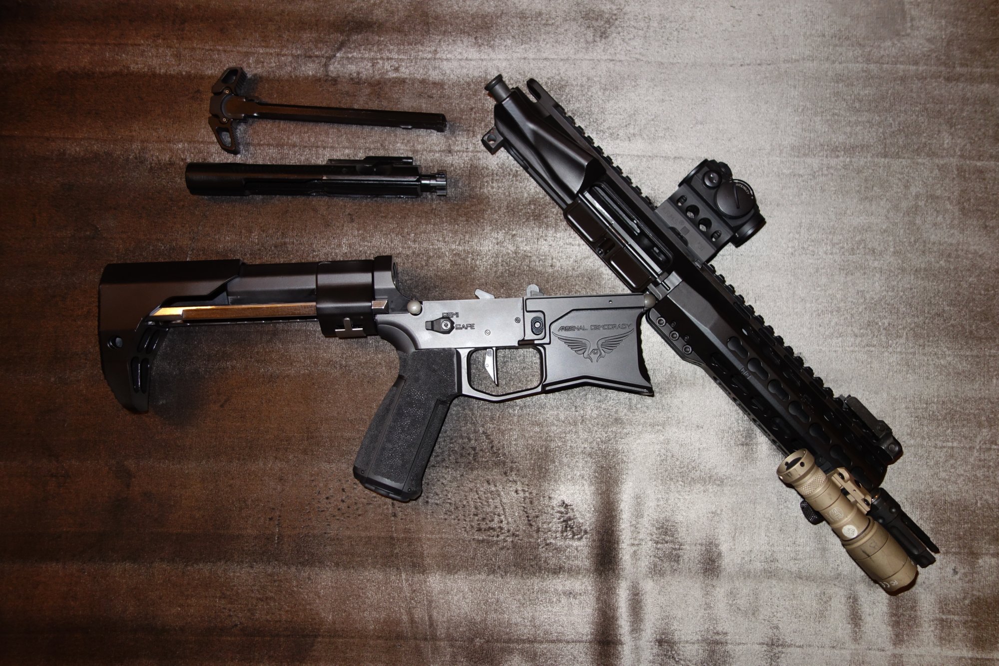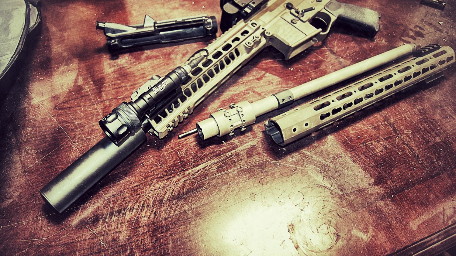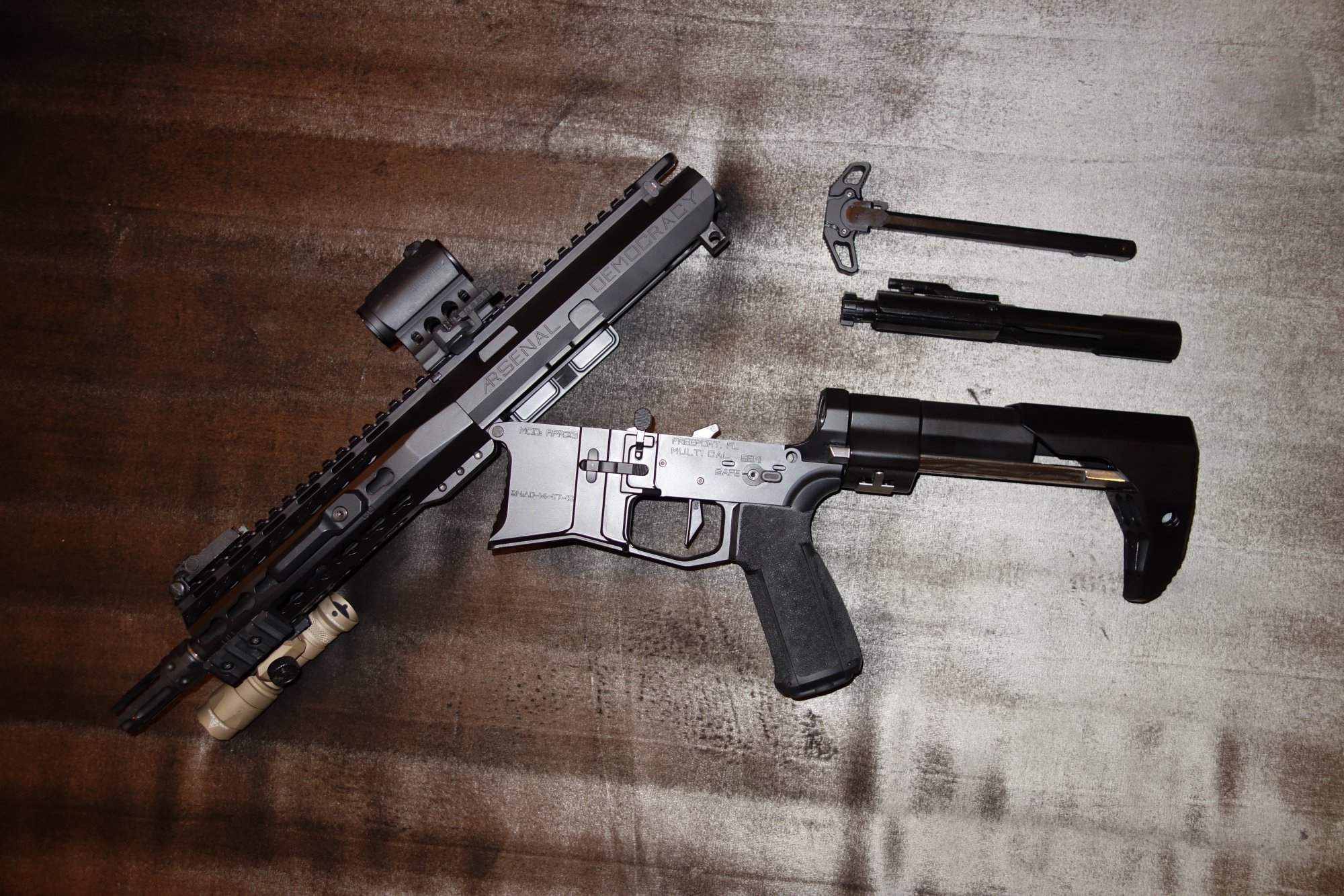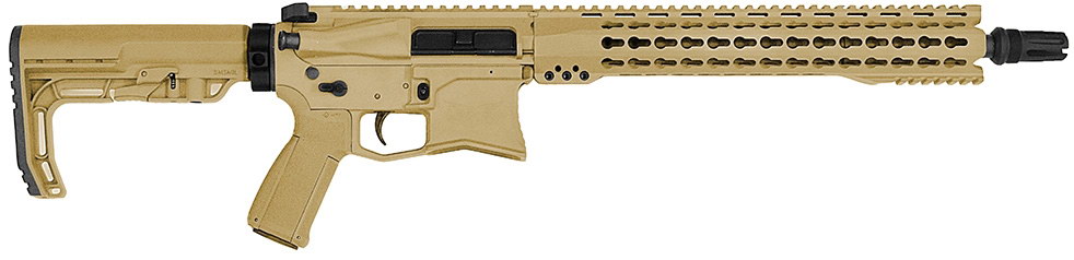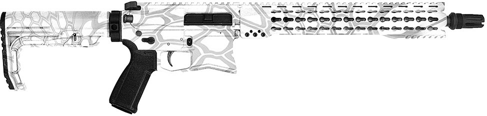 不过除了机匣是自己设计和生产之外,包括复进装置在内的许多部件大多都是直接用市场上常见或流行的成熟产品,例如双面拉机柄(那拉机柄两侧都有解定位钩的锁,但右侧的解锁是与左侧联动的,拉机柄的定位钩依然只是挂在机匣左侧,这是为了方便左右手都能操作),目前所见有VLTOR或Rainier Arms Raptor的产品,枪托采用MFT公司(Mission First Tactical)的Minimalist伸缩式枪托,但也有安装其他枪托的,还有握把也是MFT的EPGI16。不过卖给SOPMOD的只有上机匣(包含枪管、导气装置、枪机),下机匣的复进装置也包括在内,但不包括下机匣、握把和枪托。
