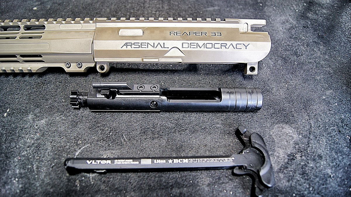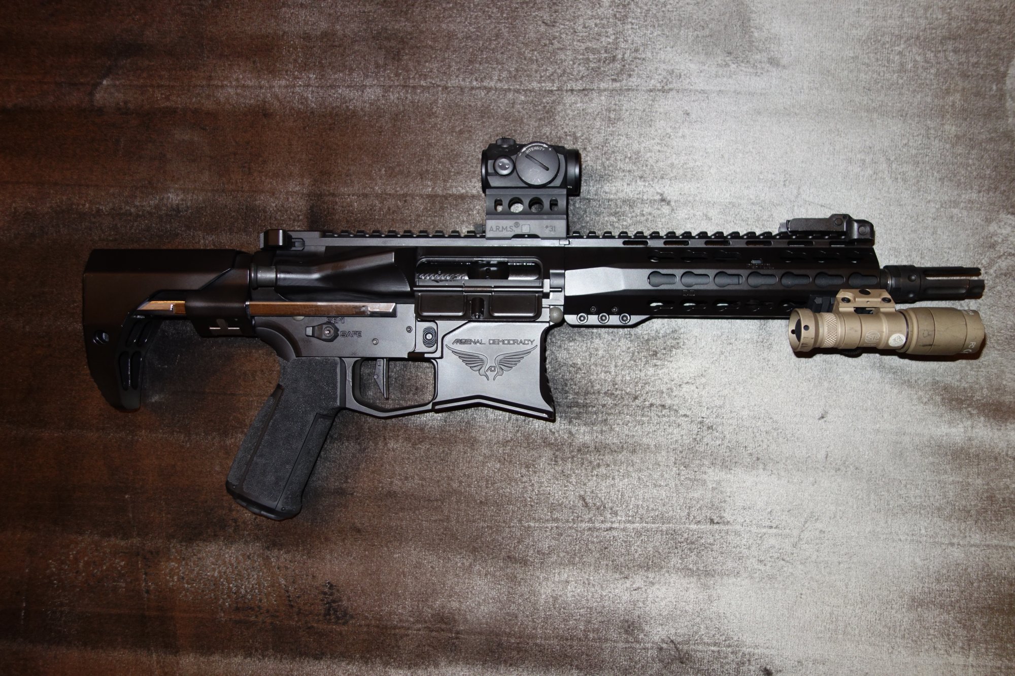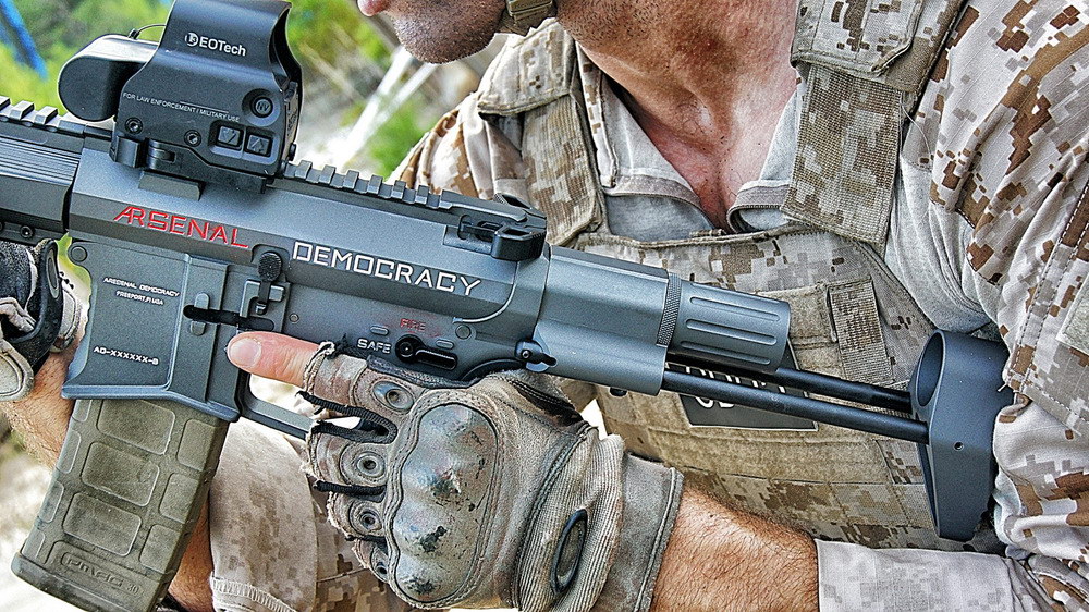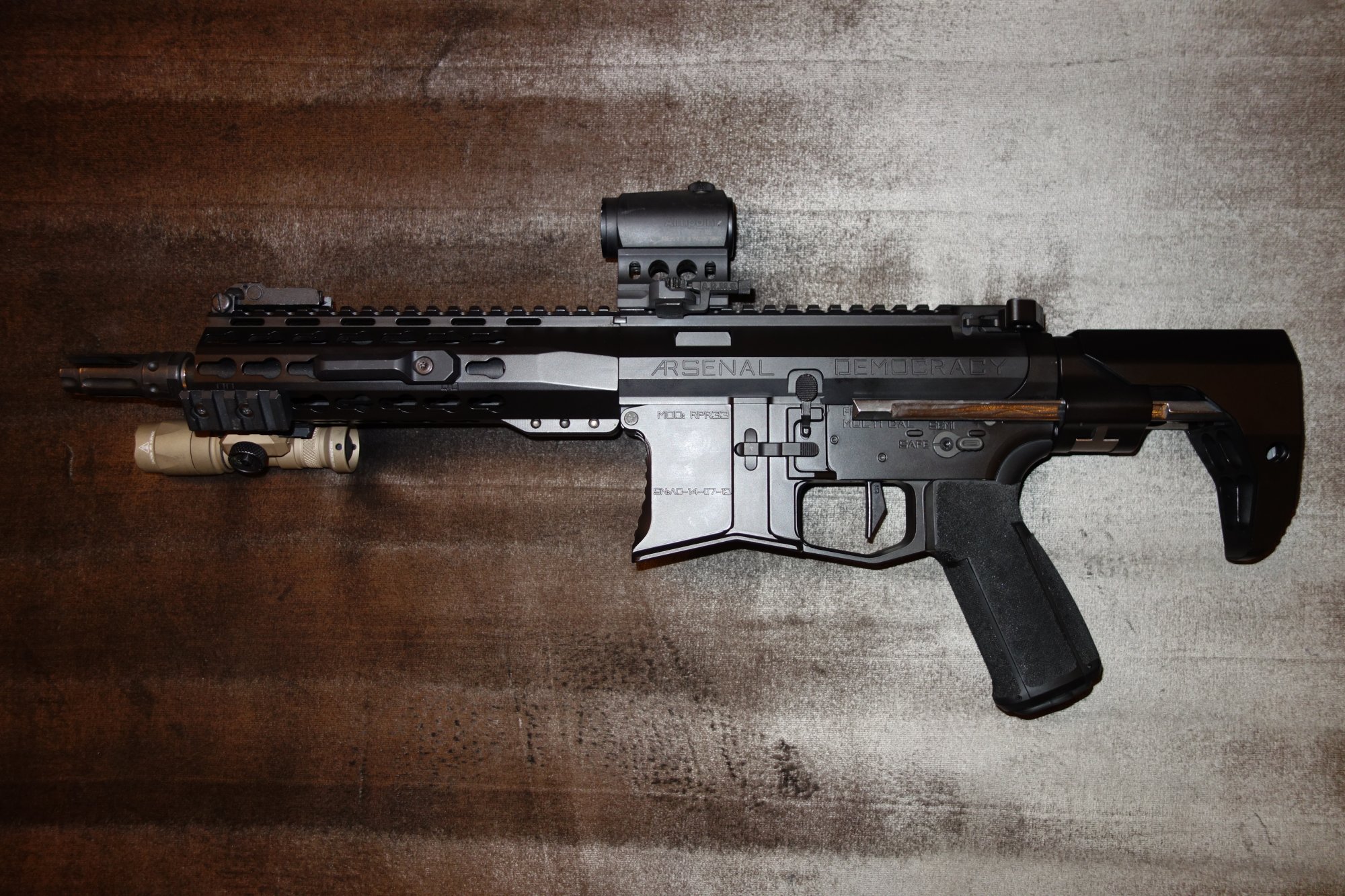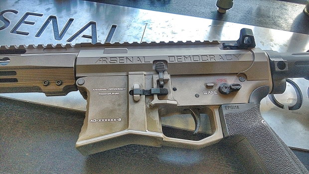 Arsenal Democracy(简称AD公司)是一家生产和销售AR式配件及整枪的小公司,该公司由两名美国陆军特种部队(即绿色贝雷帽)第7大队(7th SFG)的士兵詹姆斯·帕奇(James Pechi)和大卫·帕夫利克(David Pavlick)在2013年创立的,当时两人还在服役,到2014年时,詹姆斯·帕奇已经退役了,而大卫·帕夫利克也从现役SFG退到国民警卫队的SFG中。