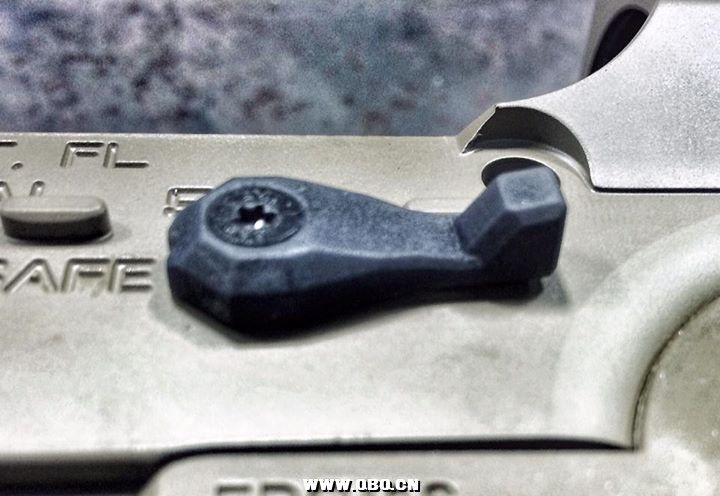 据说是根据F117隐形战斗机启发后设计的新保险/快慢机柄,并不是敌人看不到这个快慢机柄拨到哪一挡(虽然如果不靠近确实看不到),而是指它的形状,另外,这个快慢机每一挡的转动角度是45度而不是90度