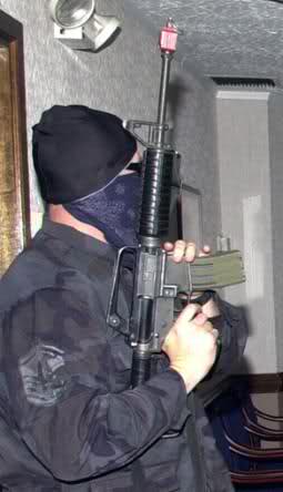![]() 1998年在巴拿马的一名美国空军保安,这是一把直枪管的GUU-5/P