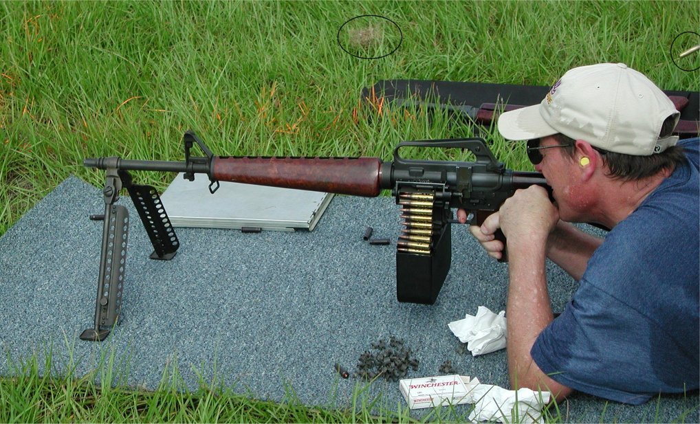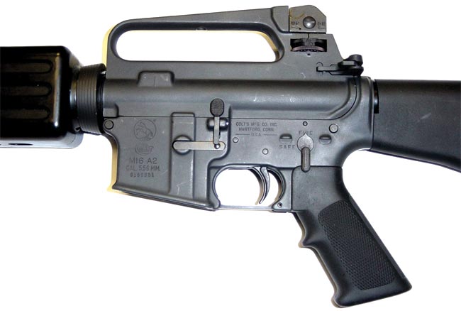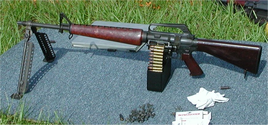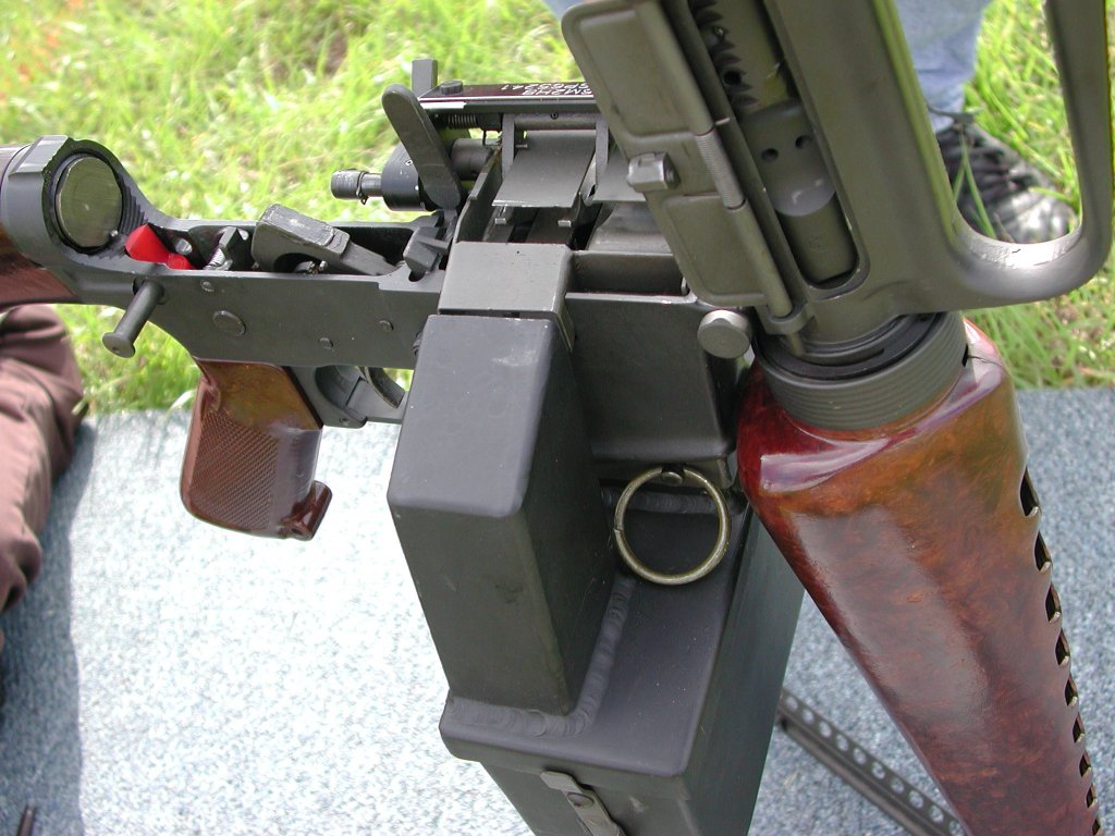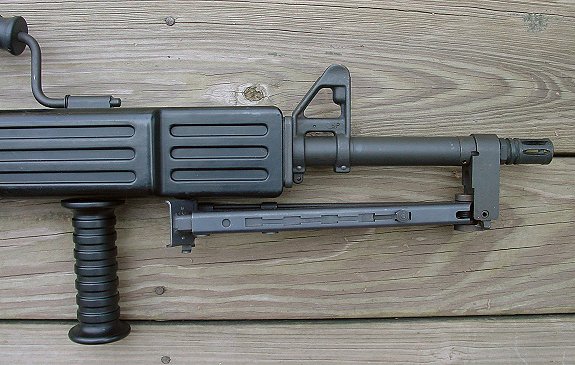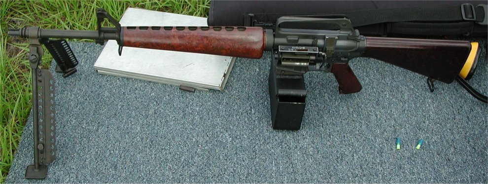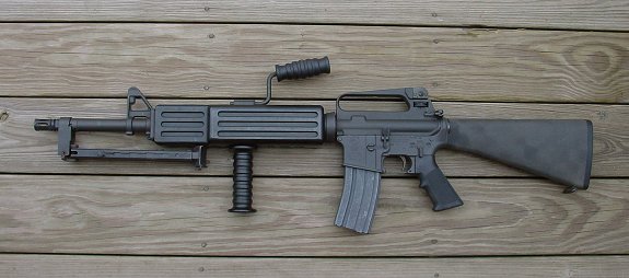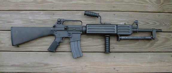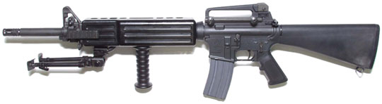 虽然采用A2式照门,但却是A1式枪管的Colt LMG,其特征是采用有倾角的前握把