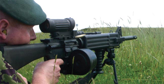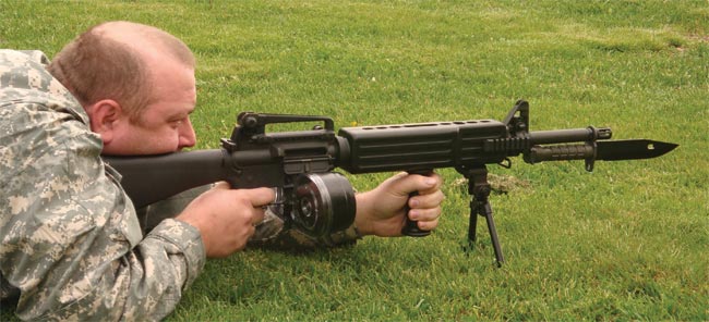 750型的M16A2轻机枪,虽然与COLT LMG很相似,但采用垂直结构的前握把。