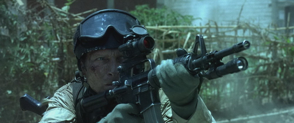在电影《黑鹰坠落》中的卡宾枪均为727后期型的造型,但实际上这批道具枪是用退役的出口型M16A2改装而成的