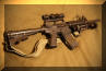 另一个玩家也是模仿1993年在索马里的三角洲部队使用的727型的改装,提把上正确地安装了Aimpoint 5000红点镜,不过下机匣是只能半自动的