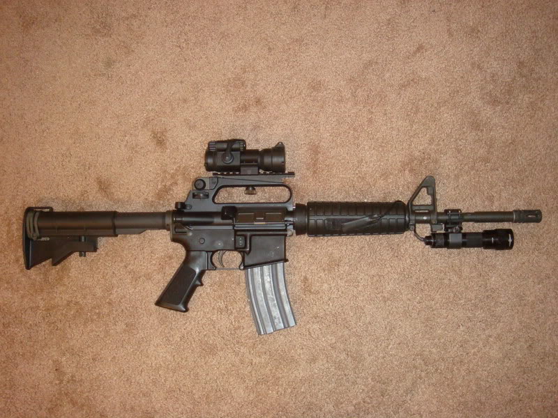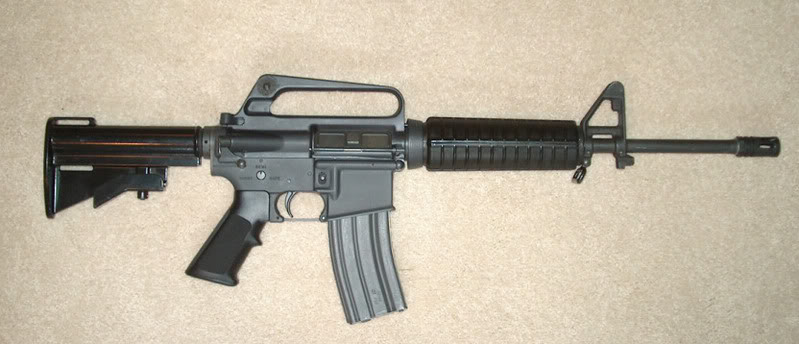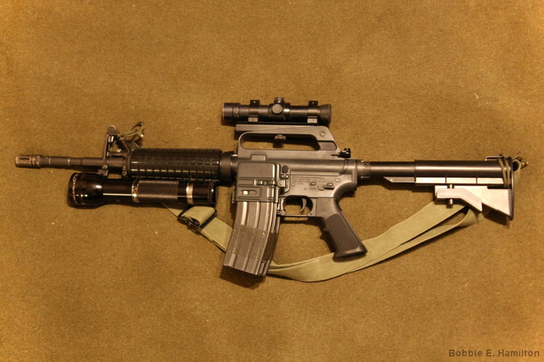 更换了XM4枪管的后期型COLT 723型卡宾枪,注意看提把上的照门为A1式样