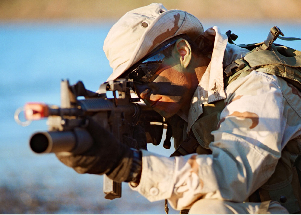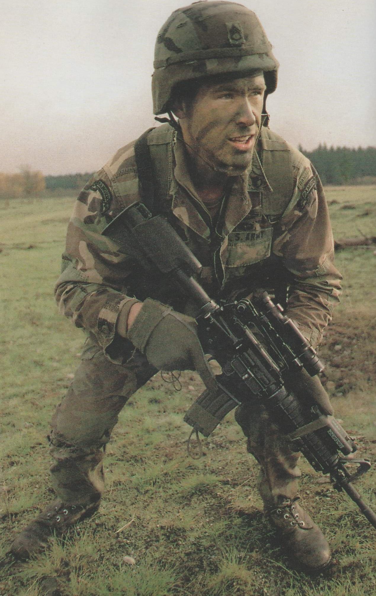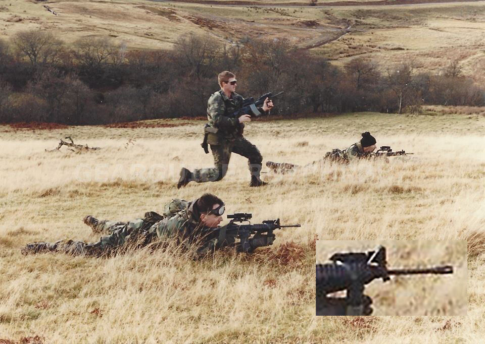 1990年代初期的游骑兵,卡宾枪应该是缩颈枪管的727型,瞄准镜是早期的Aimpoint
