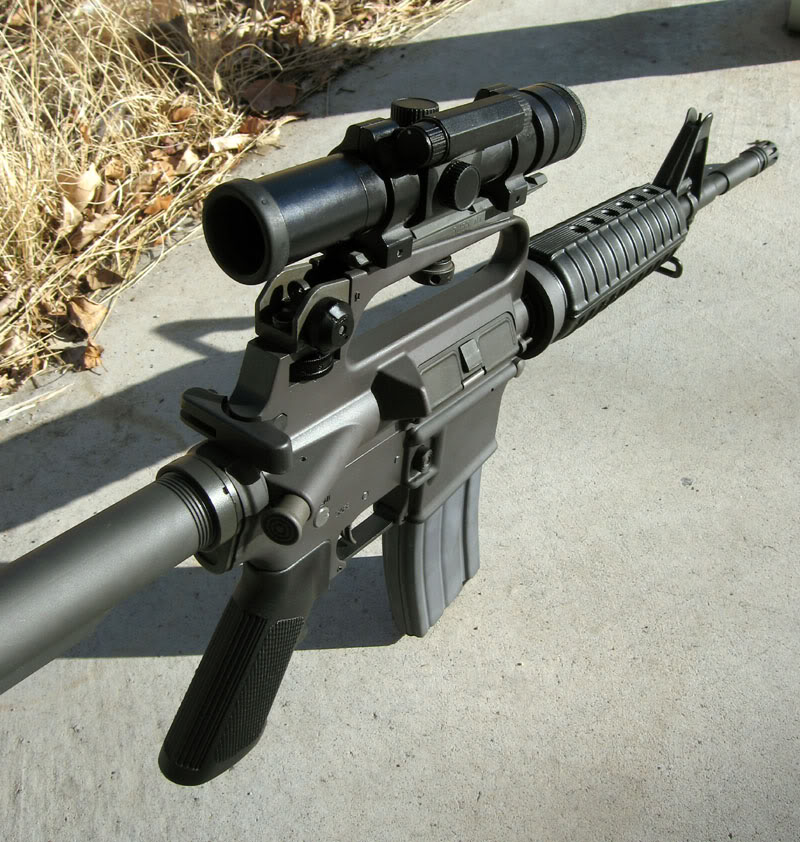 采用XM4枪管的COLT 727后期型,注意看提把上的照门形状为带风偏的A2式样