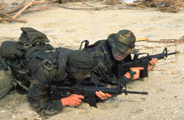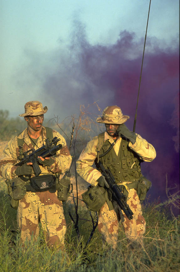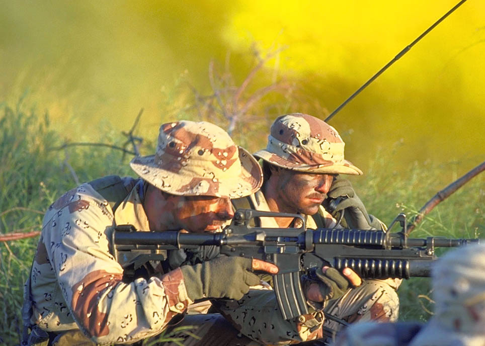 1990年代初期装备柯尔特723型与SAS进行联合演练的三角洲突击队员