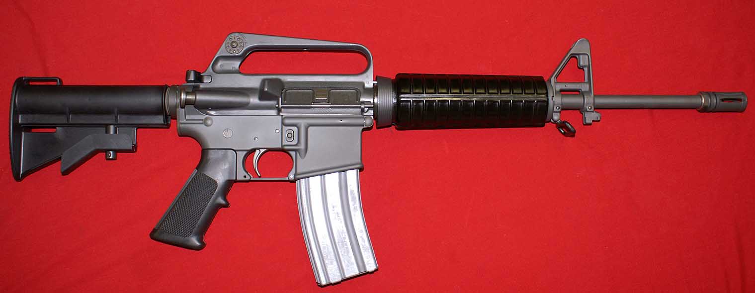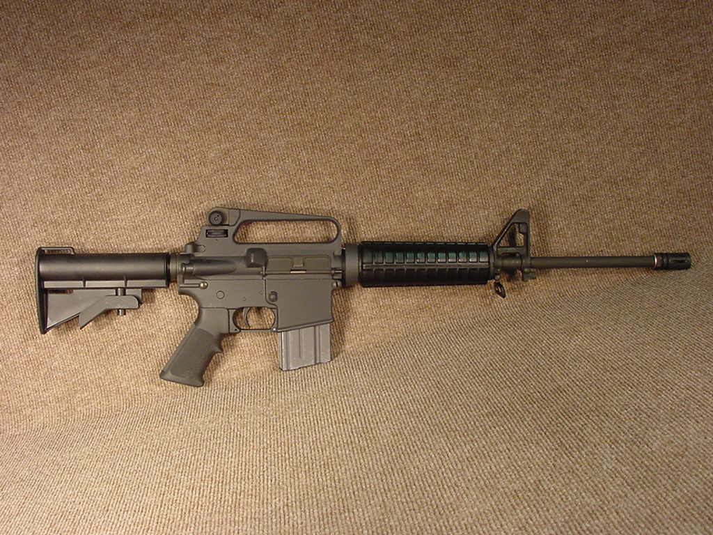 早期的COLT 723型卡宾枪,准星前的外露枪管外径与M16A1一样是0.625英寸