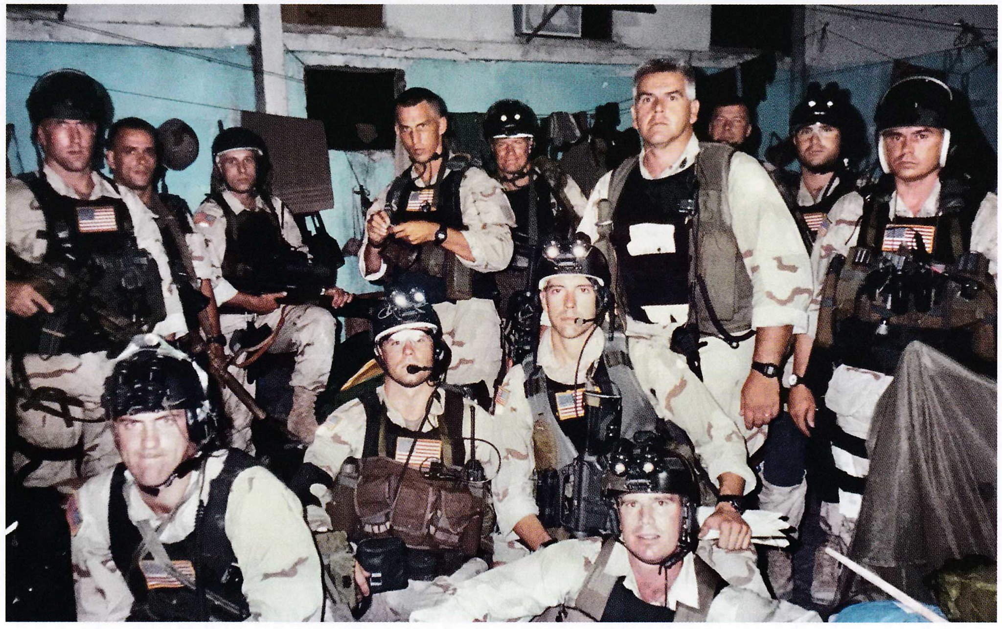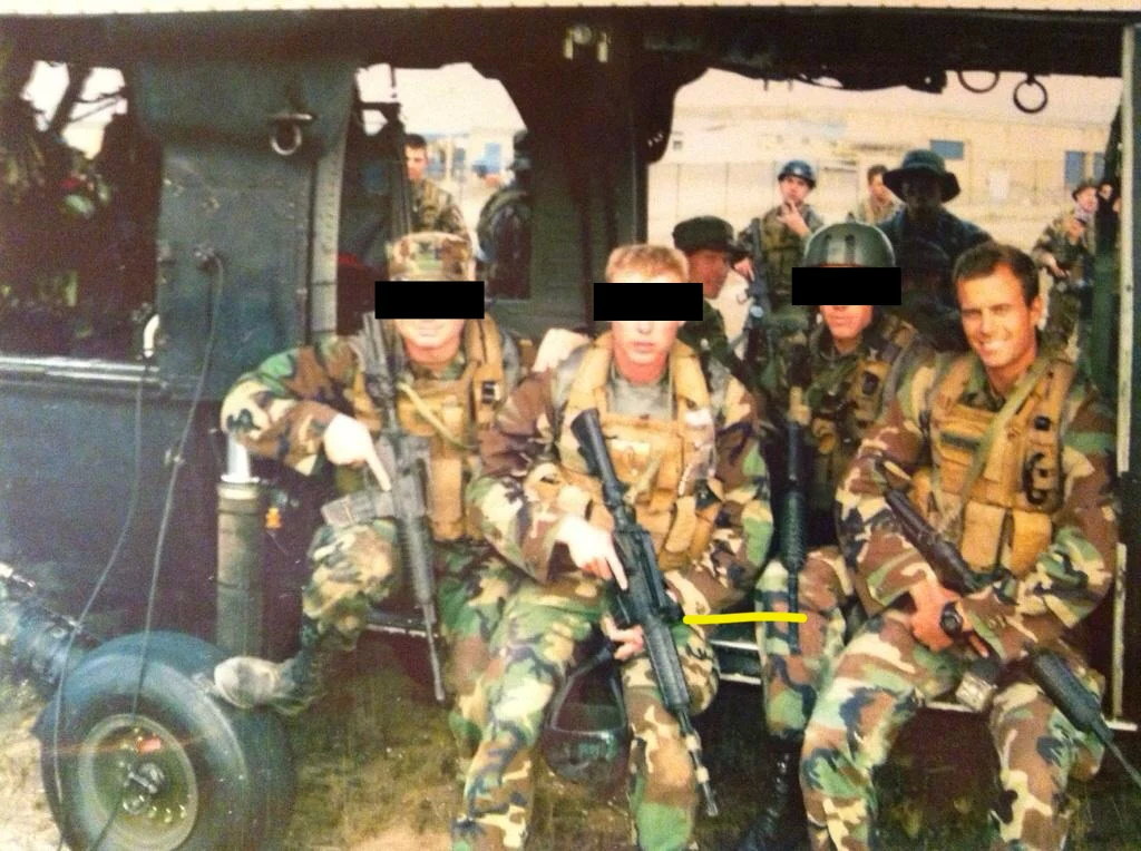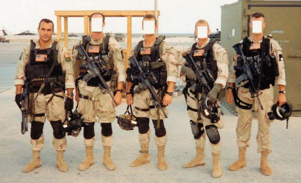 参加哥特蛇行动的三角洲队员大合照,从照门判断这些CAR-15为723型,后排左二为荣誉勋章获得者加里·戈登(Gary Gordon),他的723型上安装了OPS 3RD消声器