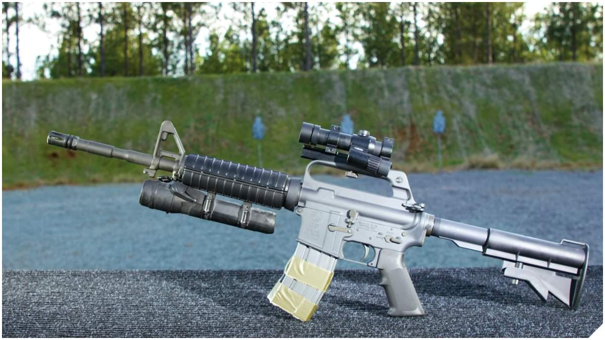 这张照片比较清晰地显示出安装了XM4枪管的COLT 723型