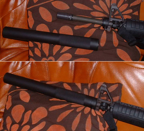 此外,美军特种部队有时会在723型或727型上安装消声器,目前所发现的照片均为OPS公司的3RD消声器。这种消声器的外套管会向后延伸包裹住整根外露枪管,一直贴到三角形准星座上,因此安装这种消声器的14.5英寸枪管卡宾枪很容易被误解成是枪管被截短至10英寸左右的情况。但实际上在后来的Mk.18 CQBR装备部队前,三角洲、海豹等特种部队极可能没装备过类似733型这样的短突击步枪(暂时未发现这样的证据,因为退役的三角洲队员从来只说他们那段时间装备的是723型,没提过733型),只是因为外接的消声器容易产生误解。此外这类消声器不同于后来的QD(快拆)消声器,并不是直接安装到消焰器上,反而要先把消焰器拆除,才能装到枪管上。
