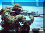 海豹2队一名狙击手在进行直升机上的射击训练,图中可见是727型卡宾枪并配上AIMPOINT 2000红点镜