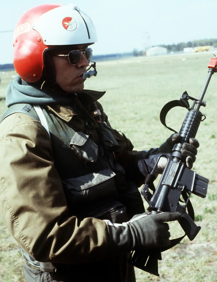 1982年在北卡罗纳州的波普空军基地(Pope AFB),这名身穿意大利作战服(也许就是参加了交换训练的意大利飞行员)正在使用653型进行射击练习。(DVIC图片)
