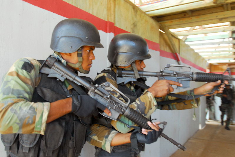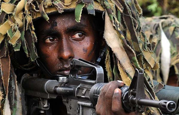 机匣都磨白了的某型M16A1卡宾枪,此图中是斯里兰卡的士兵