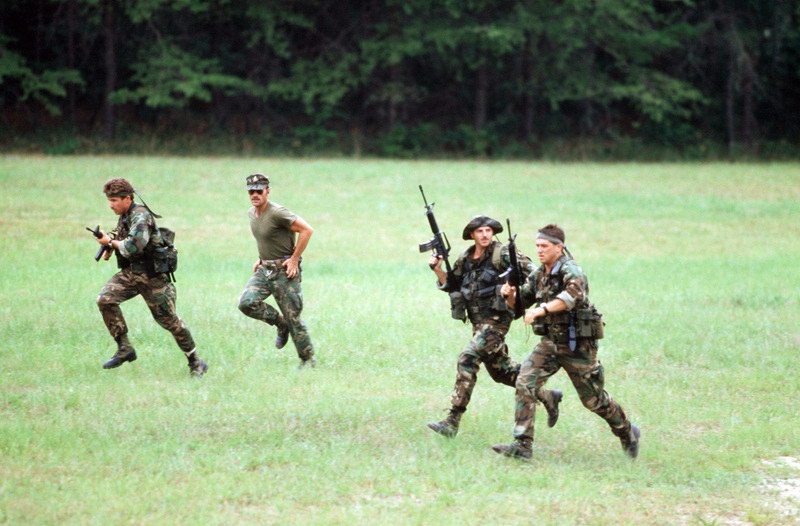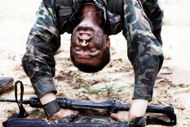 1982年,一名美国空军CCT(战斗管制队)的学员在进行体能训练,图中的卡宾枪也是653型而非GAU-5P。(DVIC)