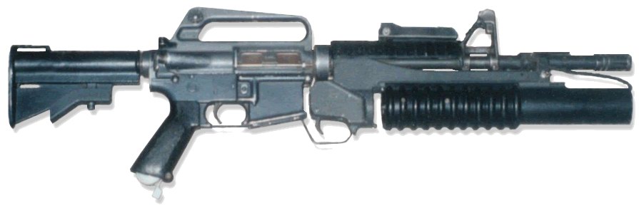 1982年的照片,以色列特种部队,照片中的左边的为加利尔SAR,中间是挂了M203榴弹发射器的CAR15,右边的是FN MAG通用机枪。