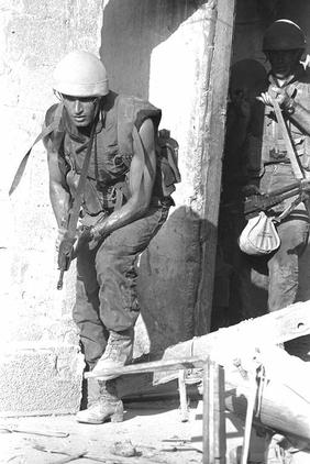 1982年执行任务中的以色列特种部队,此时CAR15已经大量取代加利尔步枪。门边的那个士兵挂着的是FN MAG。