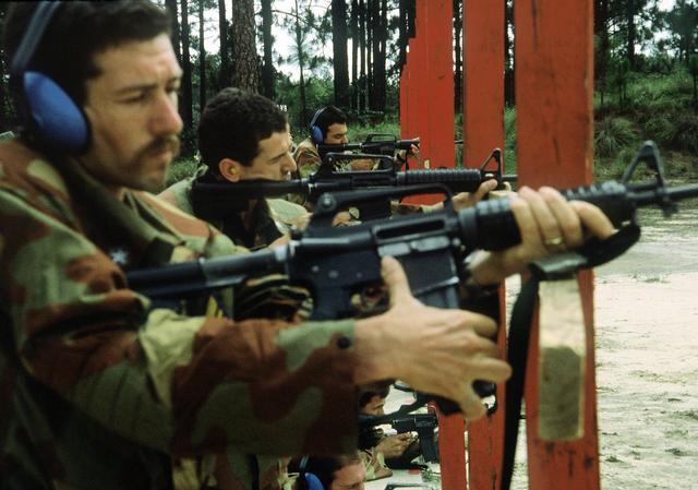 ![]() 1982年一名美国陆军空勤人员在训练中使用柯尔特653型 |