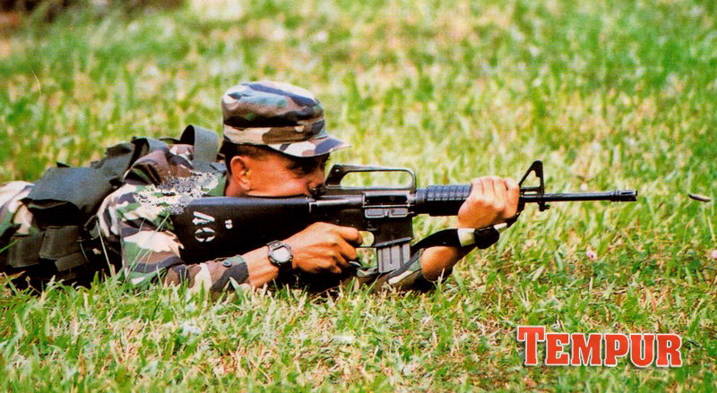 泰国军队装备的COLT 653P,提把上装了早期的Aimpoint