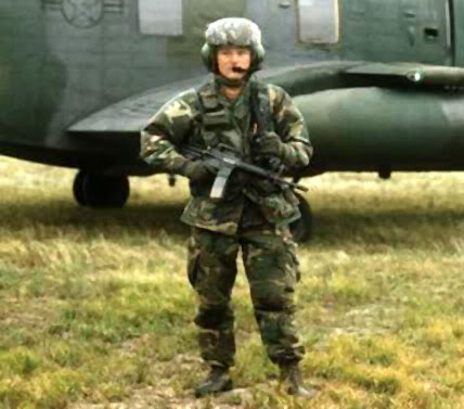![]() 三角洲队员Dennis Wolfe,这身打扮是“鹰爪行动”时期的造型,这支653型的枪口安装了XM177E2的4.25英寸消声/消焰器(Moderator) |