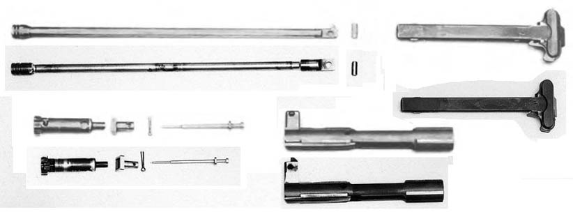 1、2号原型枪的枪机及拉机柄