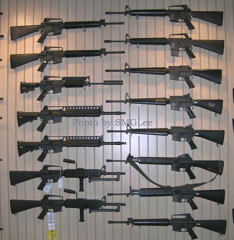 瑞得·奈特的私人博物馆中的各种AR收藏品,右下倒数第2、3支就是COLT 703型。