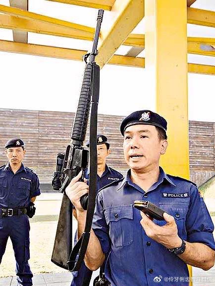 只能半自动的SP-1步枪不仅仅出售给民间用户,有部分国家或地区的执法机构因为种种原因或法规限制,需要使用威力比手枪弹大但只能半自动的武器时,这类半自动步枪也很合适。比如回归前的香港皇家警察就采购过SP-1步枪。 国外有一些网站提到香港警察的M16是越战后美国的军剩物资并改成半自动,但根据@李嘉豪等人的说法,香港皇帝警察大概在1970/80年代通过柯尔特在香港的代理商直接购买了SP1,购买的批次可能不止一批,因此消焰器有三叉式也有鸟笼形。其中有部分在后期翻修时更换了形似M16A2的护木(但实际上与A2并不通用) 。回归后的香港警察仍然在使用这种半自动的M16,其实有部分翻新时更换了类似M16A2的圆形护木,但这种护木并不能安装到M16A2上。虽然香港警察也确实采购过更少量的M16A2,但这种翻新过折SP-1除了护木外,其他SP-1的外形特征仍然保留,所以还是能识别出来。