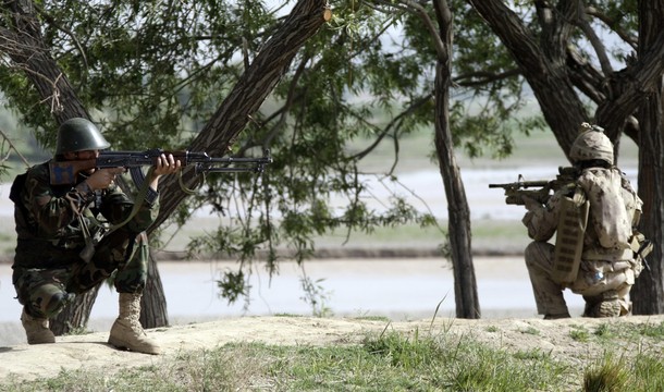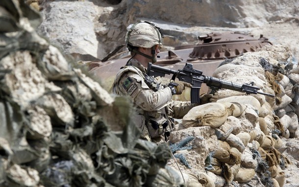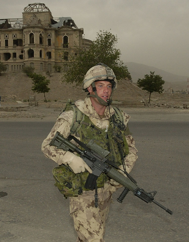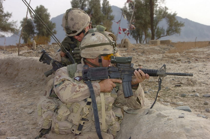 在阿富汗使用短管型C7A2的加拿大士兵,此时这种短管C7A2还未重新定型为C8A3