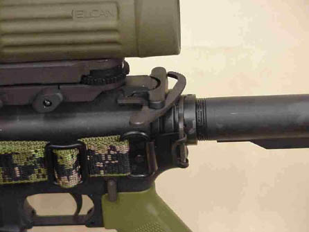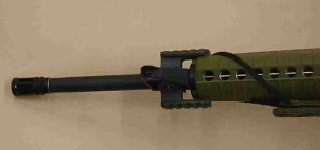 第二个受到一致抱怨的是TRIAD导轨座。虽然这种导轨座比导轨型护木经济得多也轻便得多,但却迫使士兵只能在靠近枪口的位置安装战术灯和激光瞄准器,这使得步枪前重后轻的问题非常严重,在瞄准射击时很不方便。