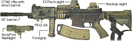 现在在喀布尔的C7A2被装备上EOTech瞄准镜和16英寸枪管,这些经验对将来C7A2的全面升级计划有参考价值。